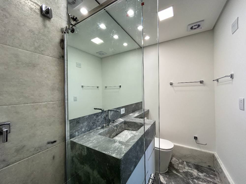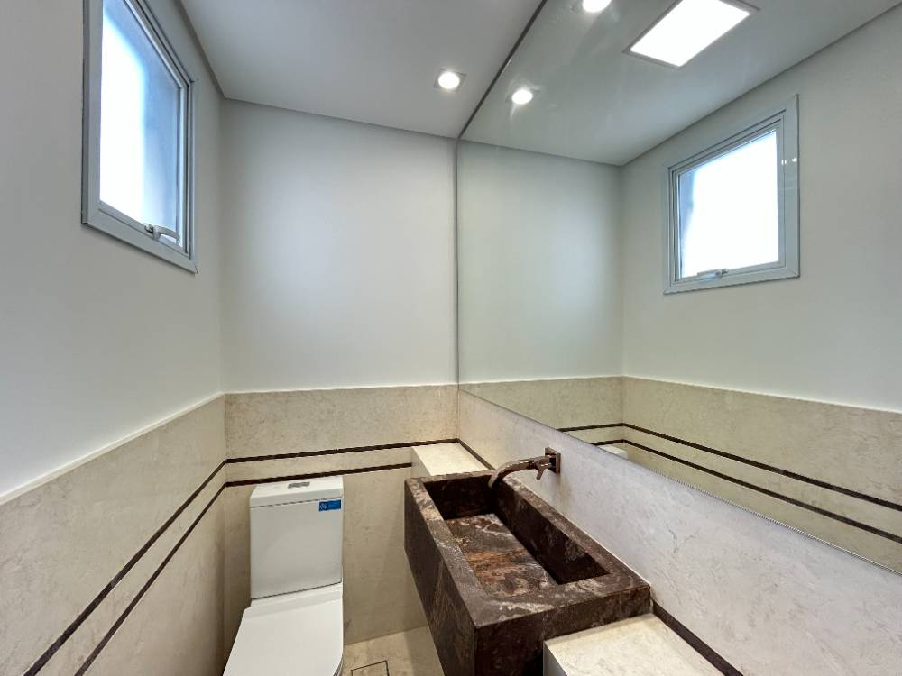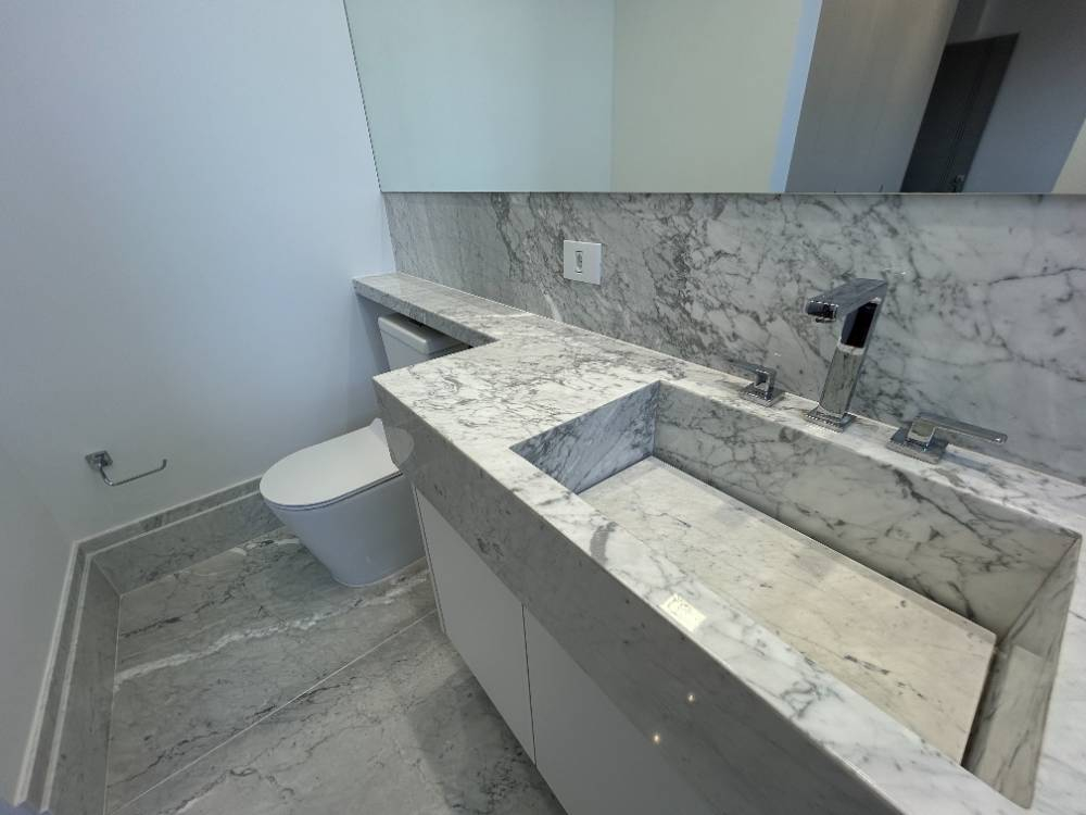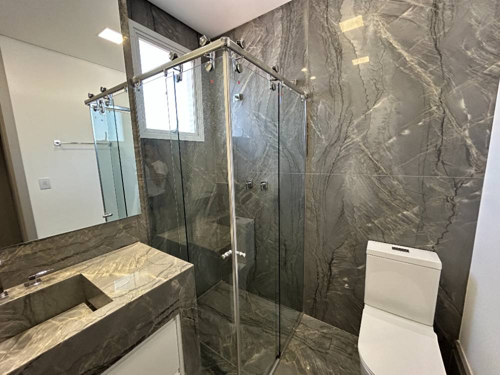 3 suítes com banheiros em mármore.