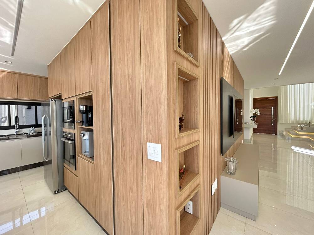 Cozinha interna com toda parte de móveis planejados já instalados.