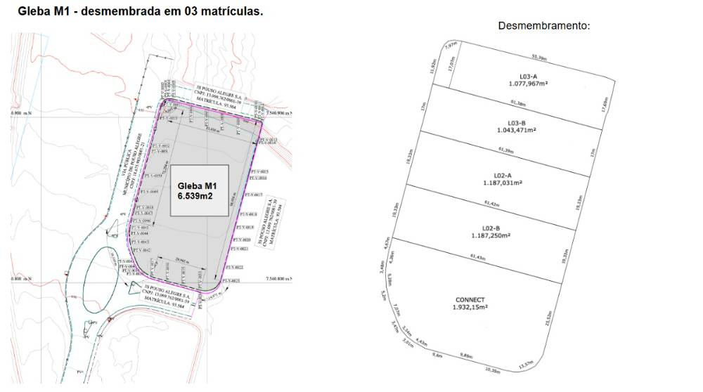 Lote 02-A: 1.187,03m² e Lote 02-B: 1.187,25m²;