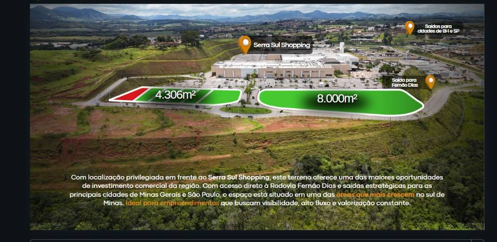 Imóveis com fácil acesso às margens da BR 381 - Rod. Fernão Dias e também da BR 459. Os terrenos trazem para o investimento a tranquilidade de se ter ao redor toda infraestrutura já pronta e 100% funcional.