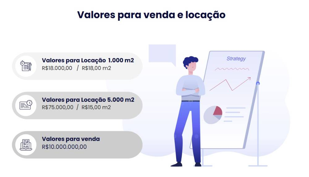 Obs.: O Imóvel também poderá ser alugado por módulos de 1.000m² / 18,00 m².