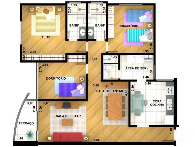 (03) Três dormitórios, sendo um deles suíte;