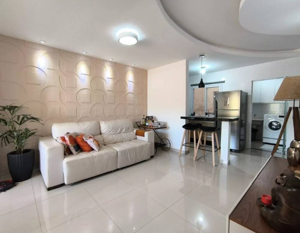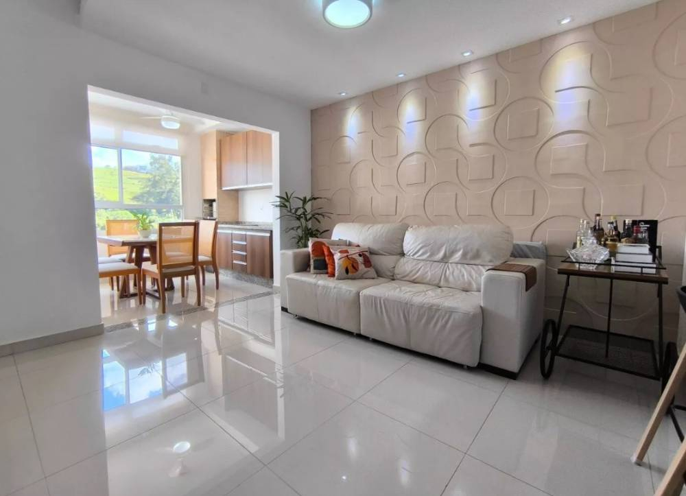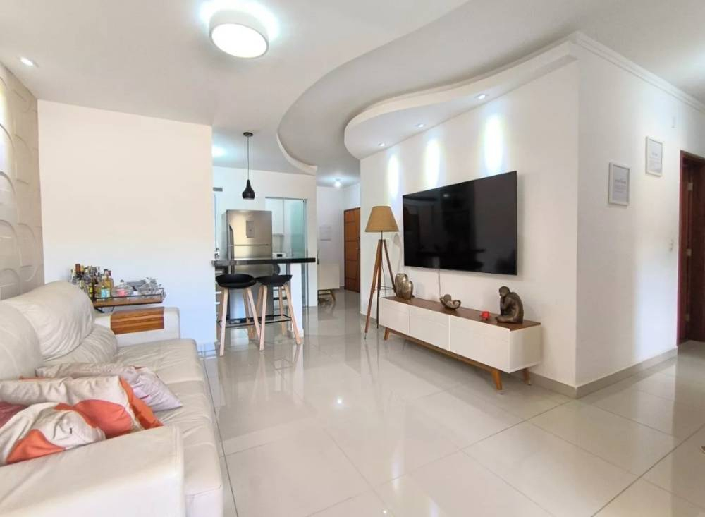 Detalhes de acabamento em 3D na sala e rebaixamento no teto;