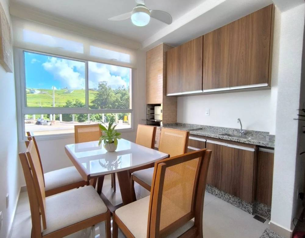 Varanda gourmet com churrasqueira ,pia e mesa de jantar com vista privilegiada e definitiva;